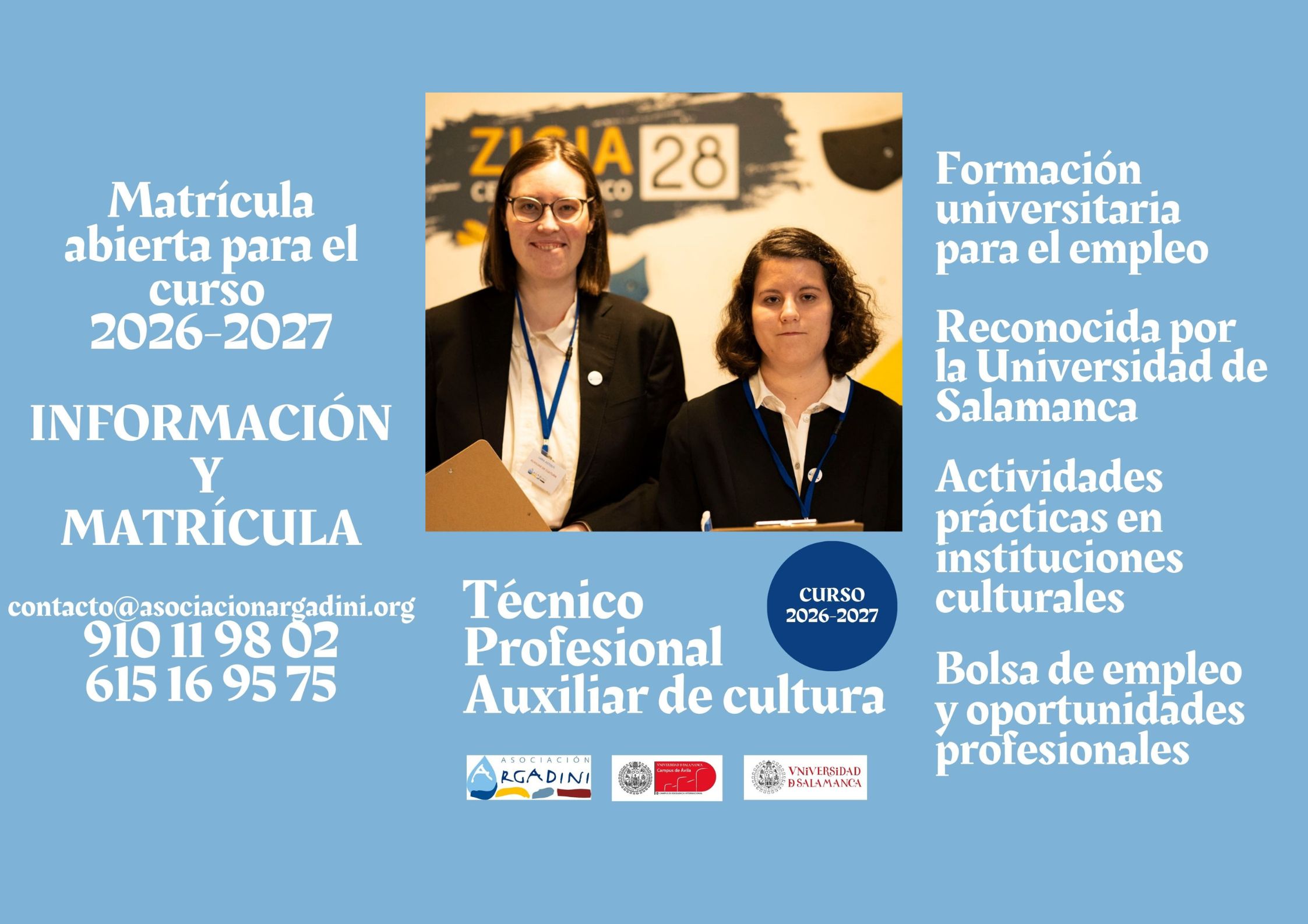 Desde la Asociación Argadini abrimos el plazo de matrícula de la Formación de Técnico Profesional en Auxiliar de Cultura para el curso 2026-2027.