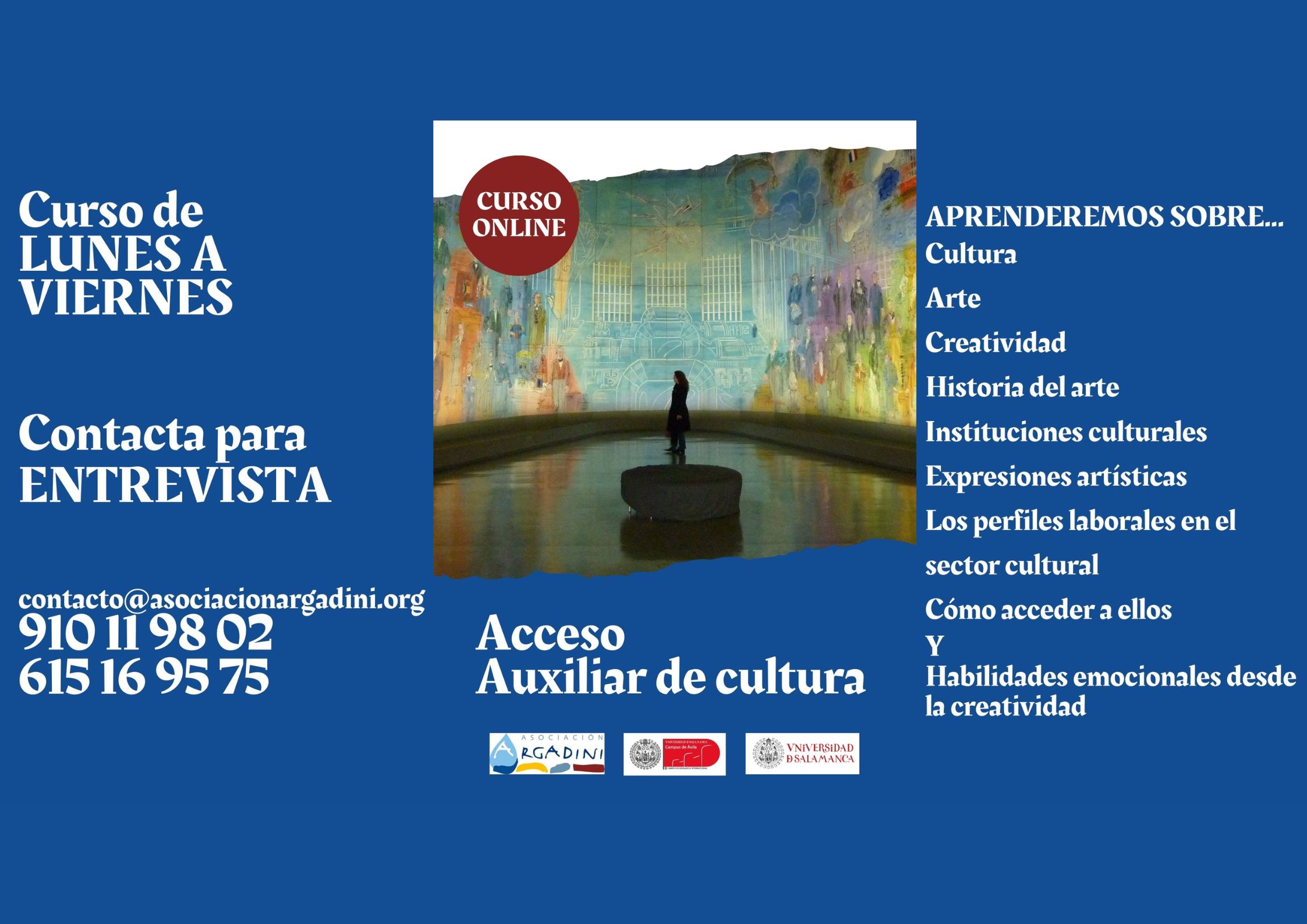 Desde la Asociación Argadini abrimos el plazo de matrícula del curso online de «Acceso Auxiliar de cultura» para el curso 2026-2027.